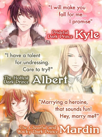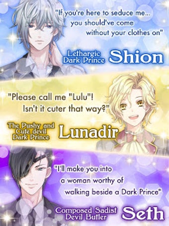 تتميز اللعبة بأربعة شخصيات رئيسية، كل منها له شخصية فريدة: الكينج الغرور Kyle، الساخن ألبرت، الكسول Shion، والمرح Mardin. تتغير القصة وفقًا لقراراتك، ويمكنك زيادة مستوى الحب مع الأمراء الظلاميين باستخدام الأفاتار لفتح رسومات متحركة خاصة وسيناريوهات. تحتوي اللعبة أيضًا على أحداث محدودة الوقت وحلقات رومانسية جميلة بينك وبين أميرك المفضل الظلامي.